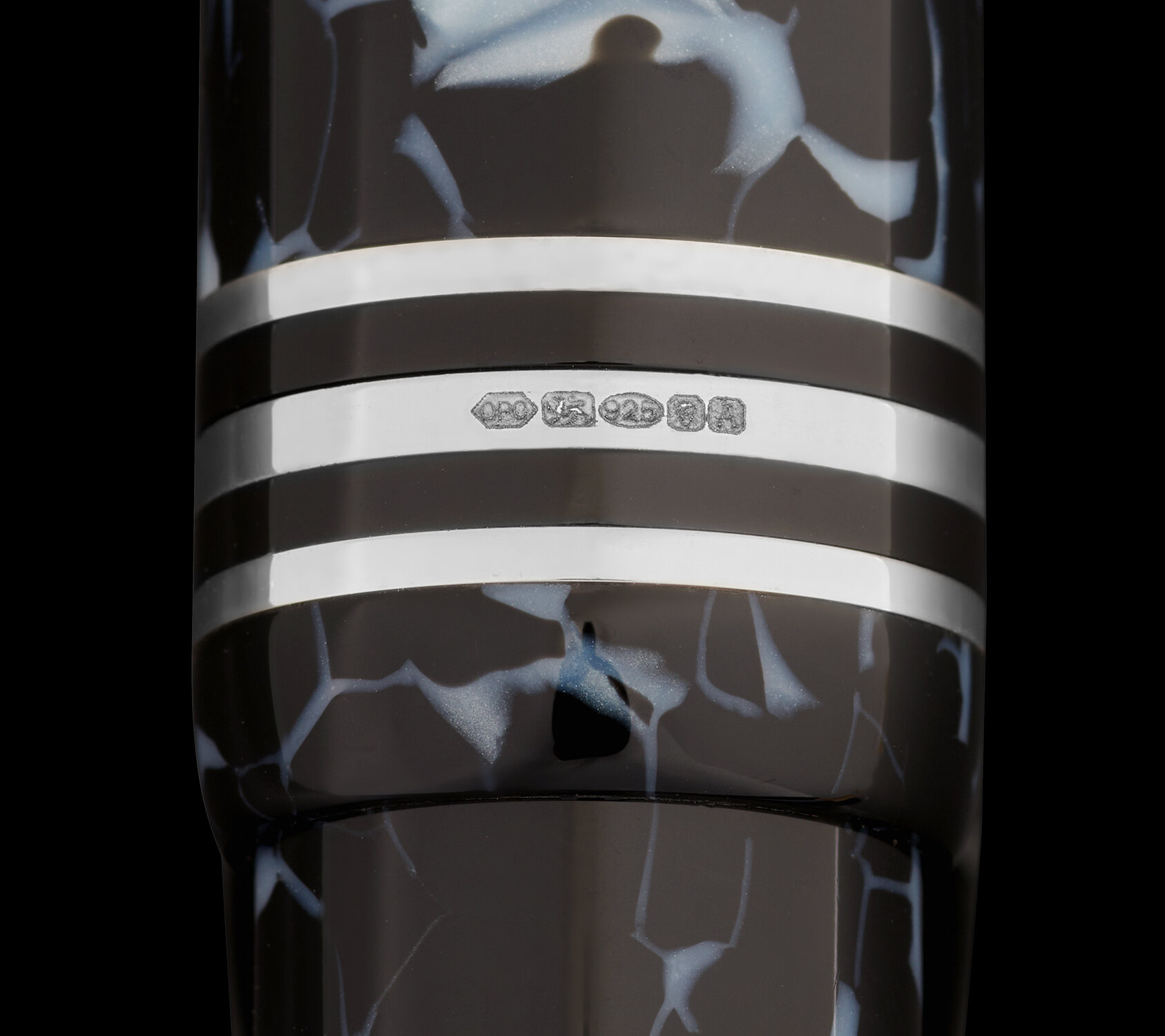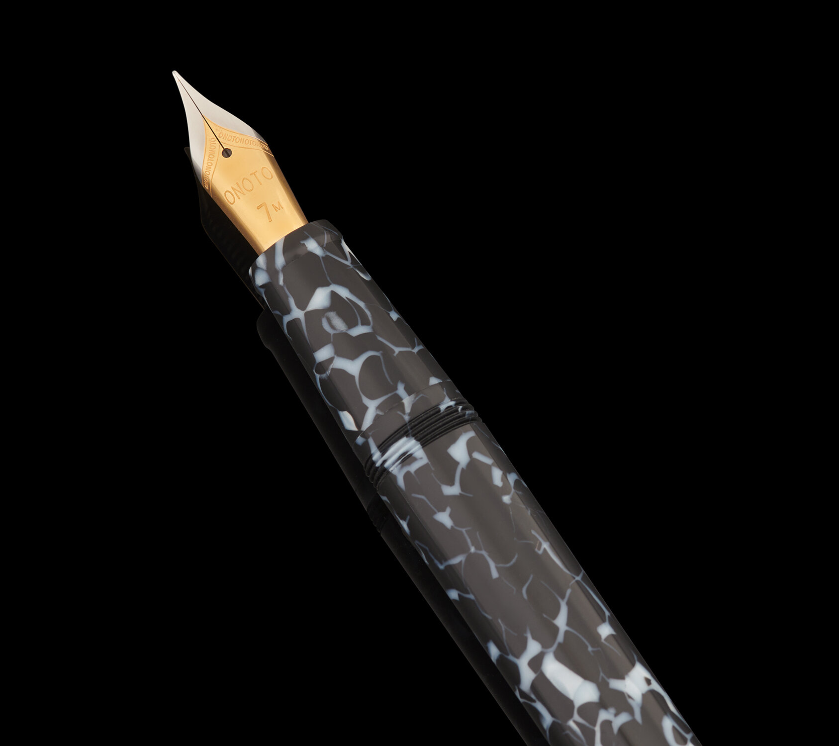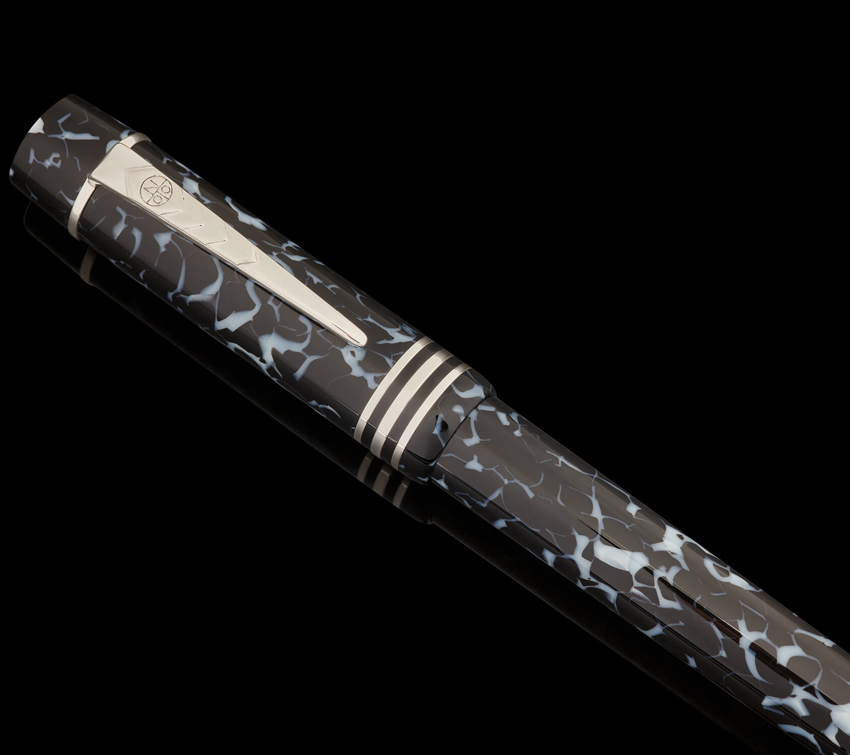 Part of the Oceania Collection, the Magna Oceania Odyssey is a voyage captured in resin with a deep black body streaked with oceanic flashes of white, like moonlit waves cutting through midnight seas. The marbled finish evokes shifting currents and distant horizons, turning every pen into a personal odyssey across the vastness of the ocean. Crafted for those who write with purpose, it’s a journey as enduring as the sea itself.