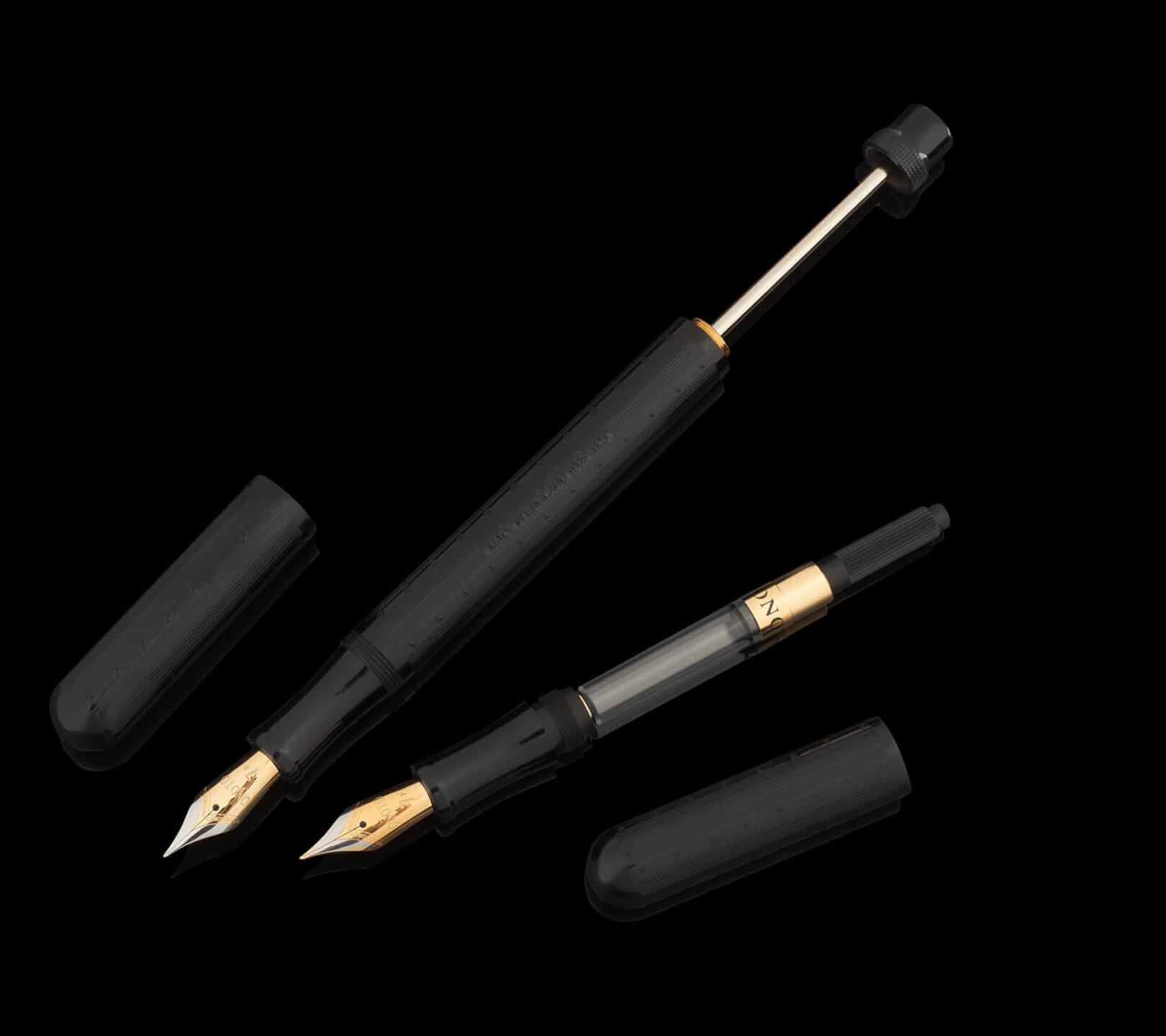 The Onoto Heritage is based on the long-barrelled ‘N’ type fountain pens that helped define the early success of Onoto. Crafted in England from vintage-style ebonite — the same material used in many original Onoto models — this edition features the classic “line and dot” guilloche pattern, recreated using diamond engraving techniques.