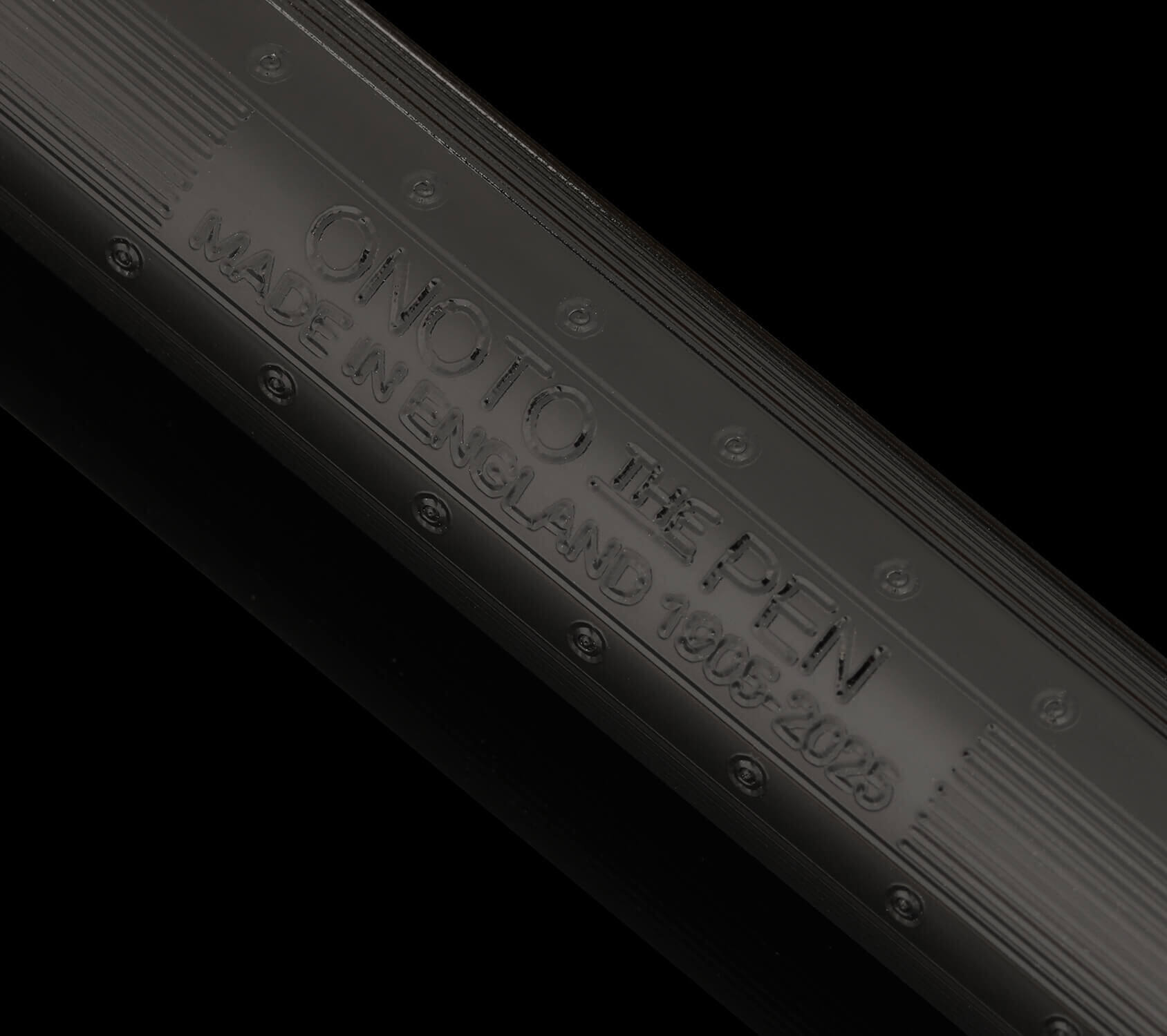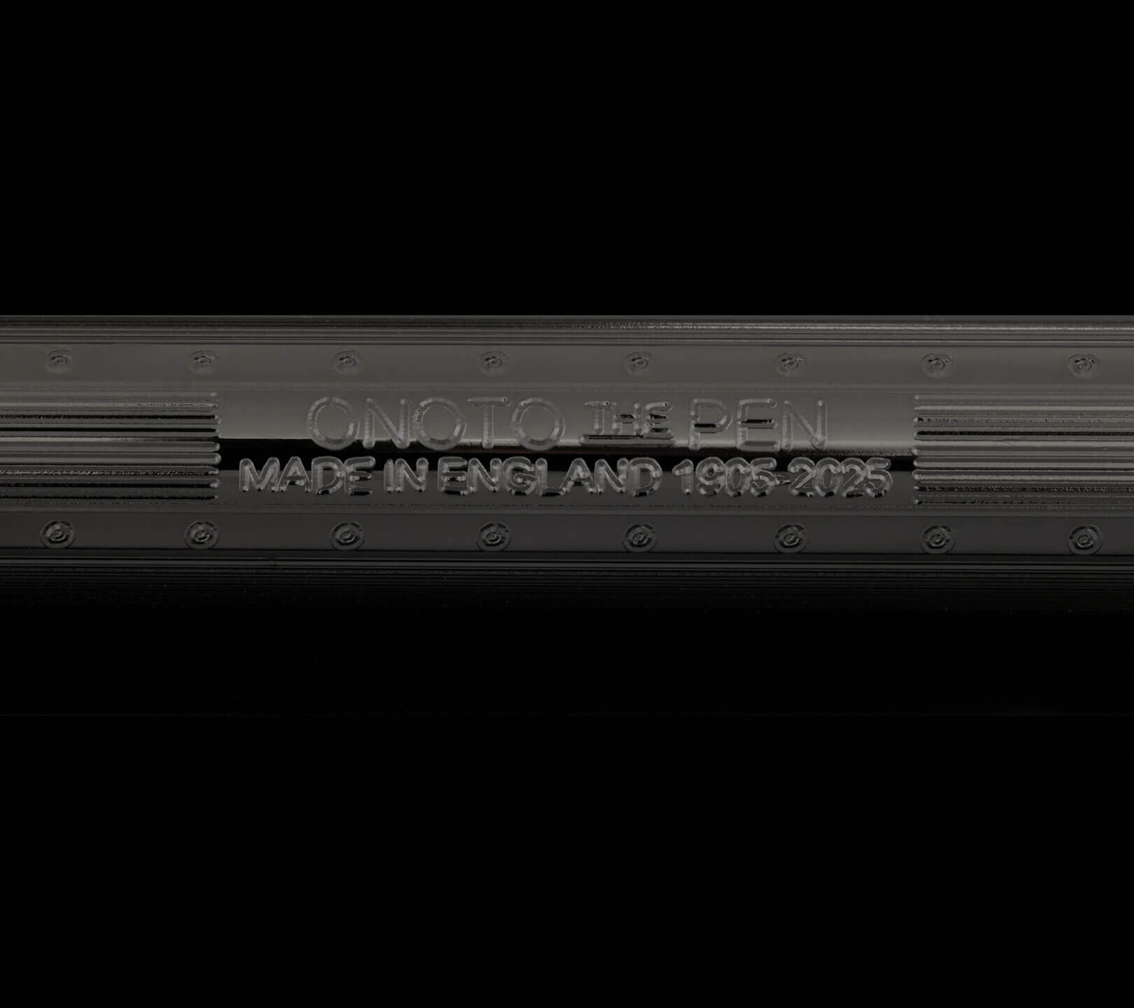 The barrel carries the familiar inscription “Onoto the Pen – Made in England”, now joined by the dates “1905–2025” to mark 120 years of British penmaking. A finely textured grip band completes the vintage feel.