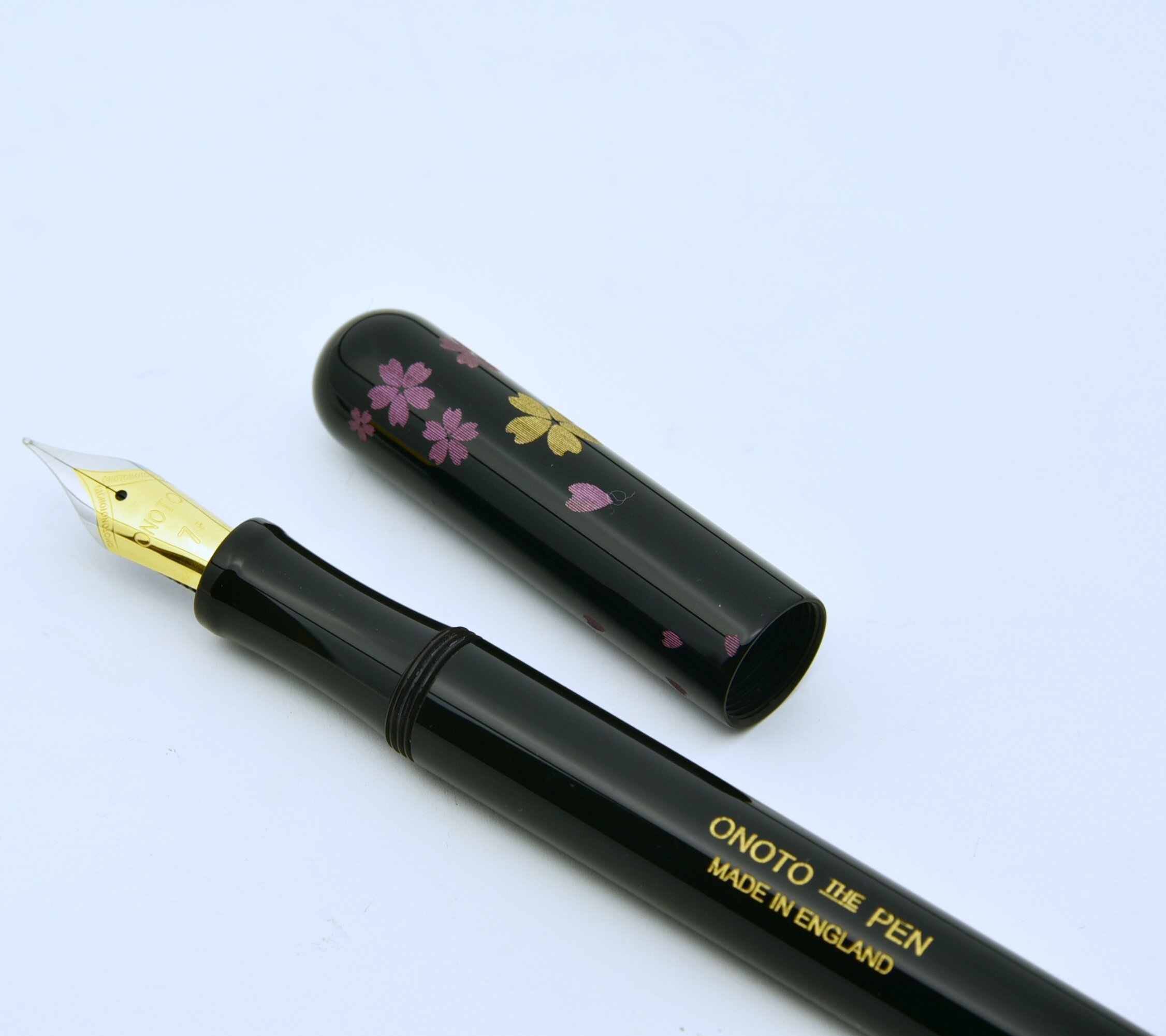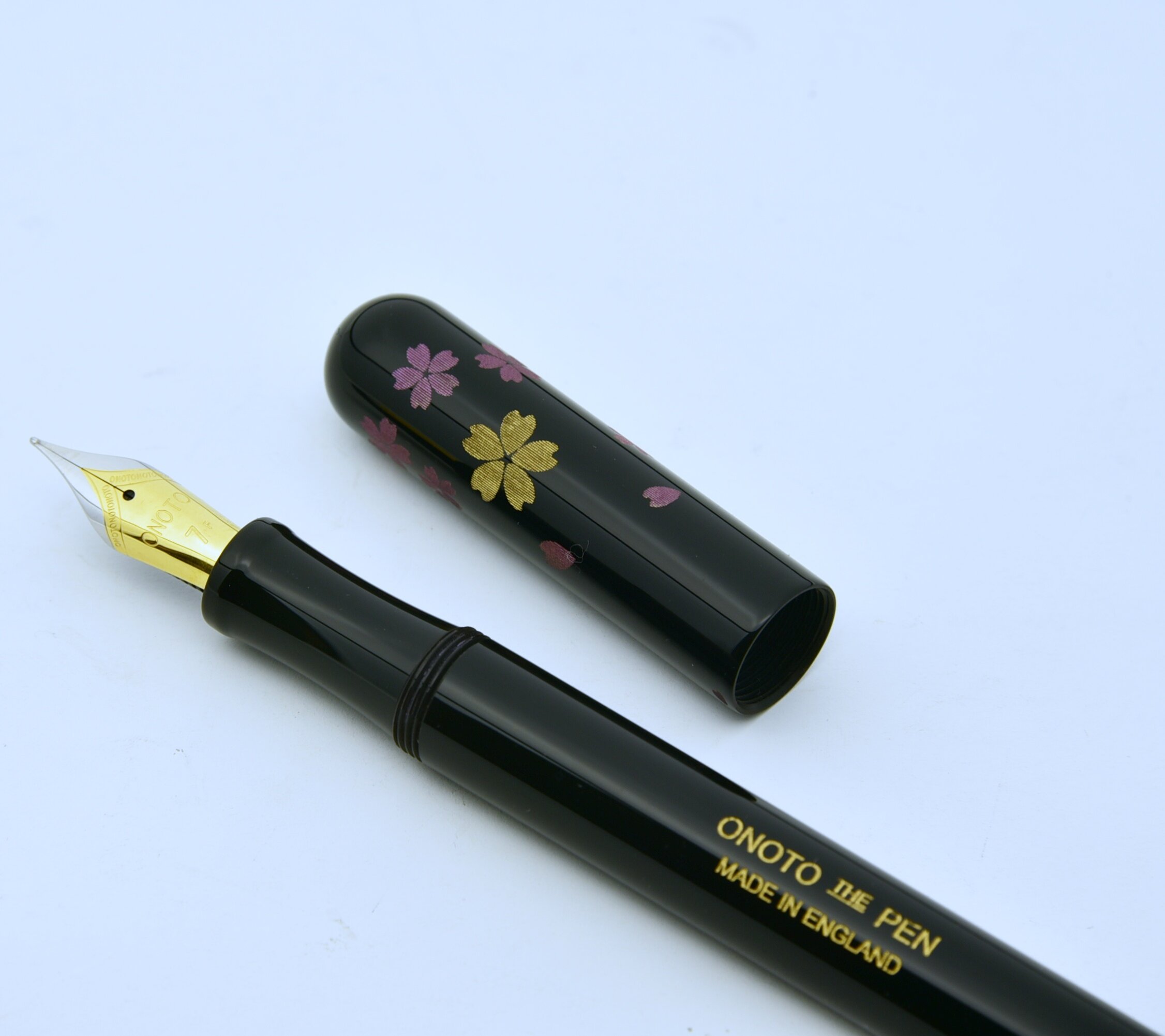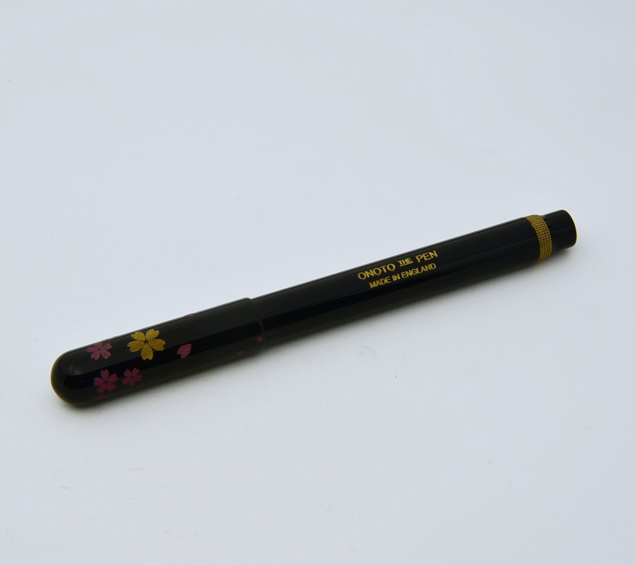 On the barrel, the classic inscription “Onoto the Pen – Made in England” is engraved in keeping with traditional Onoto heritage. Near the top of the barrel, the word Hanami and the Japanese characters 花見 are finely engraved and individually hand-gilded in gold, adding a subtle cultural reference that completes the theme of blossom viewing.