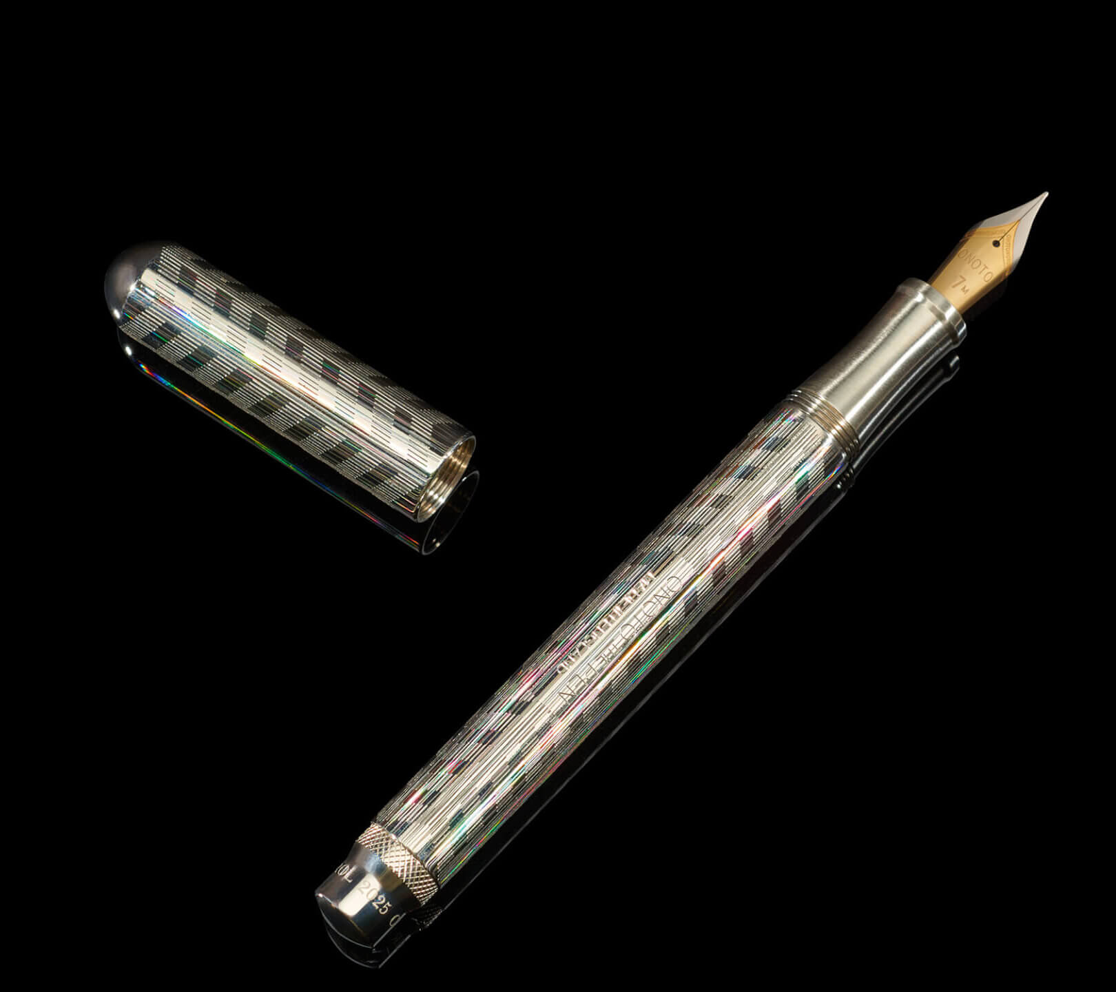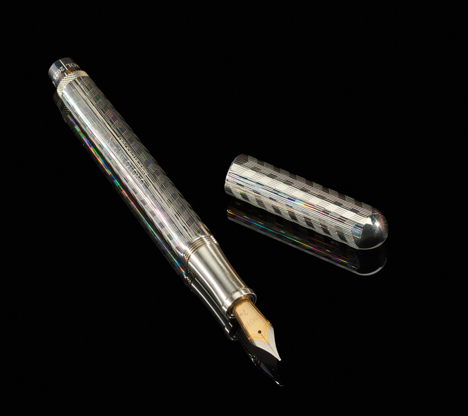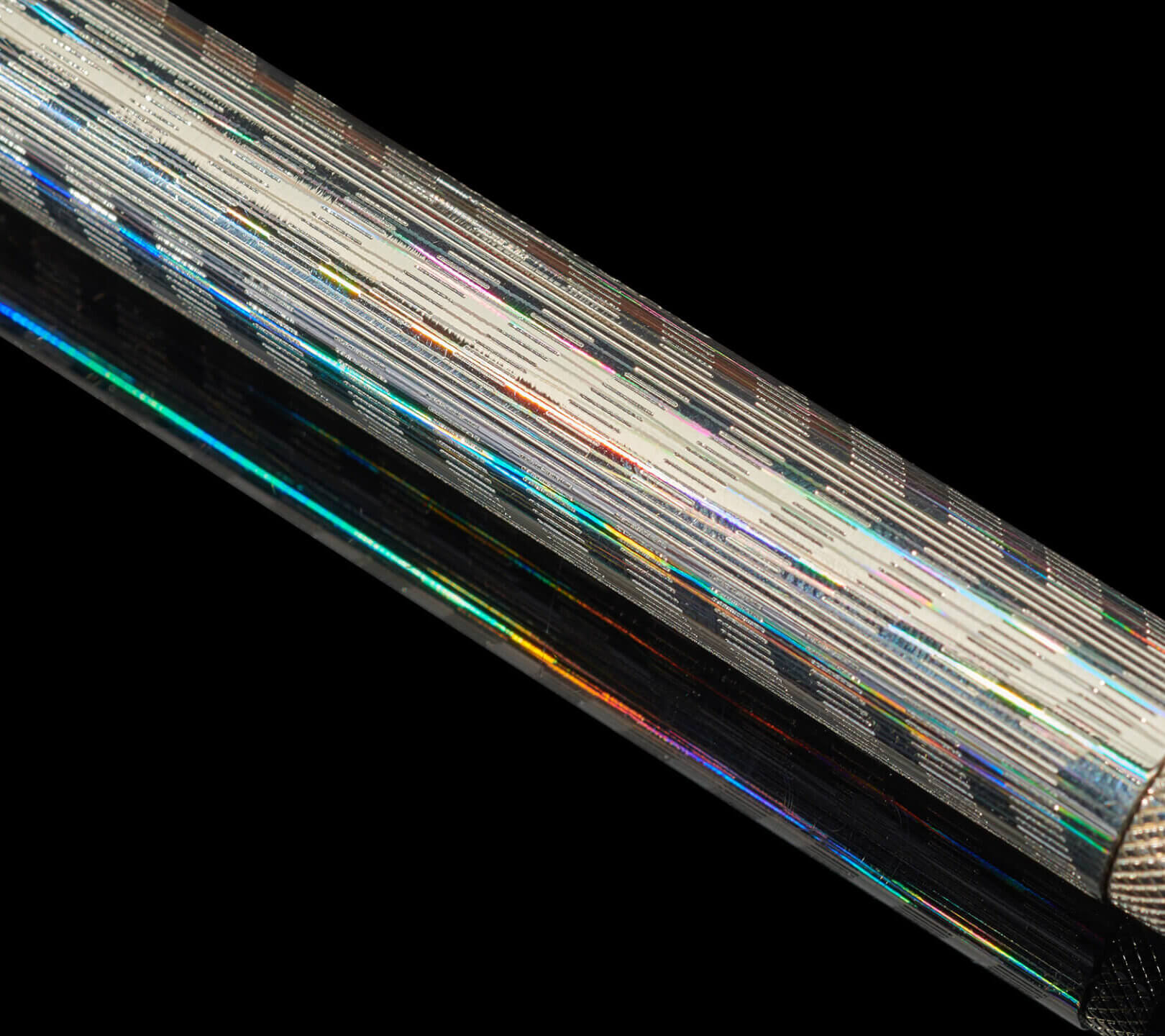 Adding to the uniqueness of the pen is the micro-faceted geometry treatment of the pen surface under the chevron patterns. It creates subtle shimmery effect when the pen is observed under the angled light.